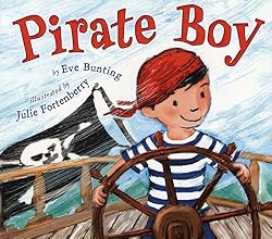 Pirate Boy was written by Eve Bunting and illustrated by Julie Fortenberry. In this sweet story, a young boy’s mother reassures him when he worries about being lost at sea on a pirate ship. Kids and adults will love this pirate themed tale of a mother’s love.