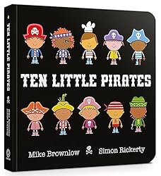 Ten Little Pirates was written by Mike Brownlow. This rhyming counting book encourages kids to count along with ten little pirates as they set out to sea.